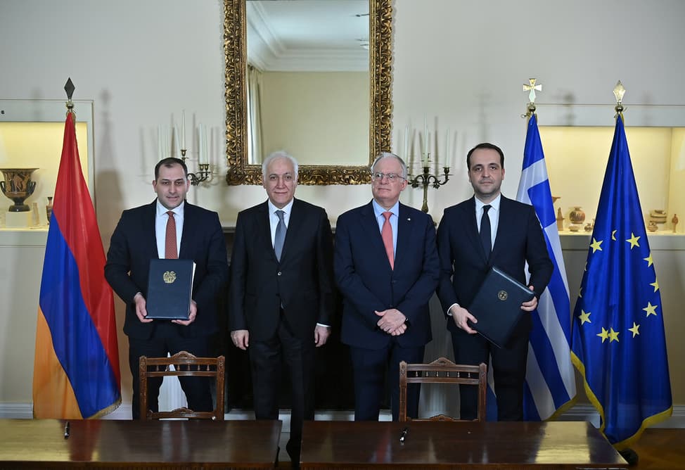 Armenia and Greece have signed a memorandum of understanding that paves the way for joint projects in the field of digitalization, high technology and scientific research. The document was signed by the First Deputy Minister of High-Tech Industry of Armenia Gevorg Mantashyan and the Deputy Minister of Digital Governance of Greece Christos Dermentzopoulos.